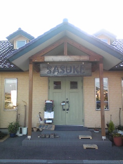 アルファベットのお店の名前のしたに、ご丁寧にひらがなで「さすけ」って書いてあるんですよ。